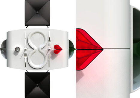 | A Lighthearted Look at Lighting Hungry Hearts Posted: 09 Mar 2009 01:00 AM PDT “Table for two, please. Thank you. Oh I see you’ve prepared a table which emphasizes the fact that we are in love. Thank you again!” Welcome, to you, to “dinner4two”, a contraption made by the romantically named designer Ricardo Sa Freire. Take a moment to explore the same-plate, the broken heart glass, and the snug split-line table. Kisses! A relationship with a lovers table one may never have had before. First, no backs to the seats, “If you are want to lean somewhere lean forward,” so sayeth Sa Freire. The plates are one, so prepare to share. The red cup has a broken heart when it’s left alone, so drink up the win together. And the table: it has a line down the middle to invite invasion. And it’s low to the ground, and cozy underneath and on top. Invites for after-dinner. See you there. Designer: Ricardo Sa Freire |